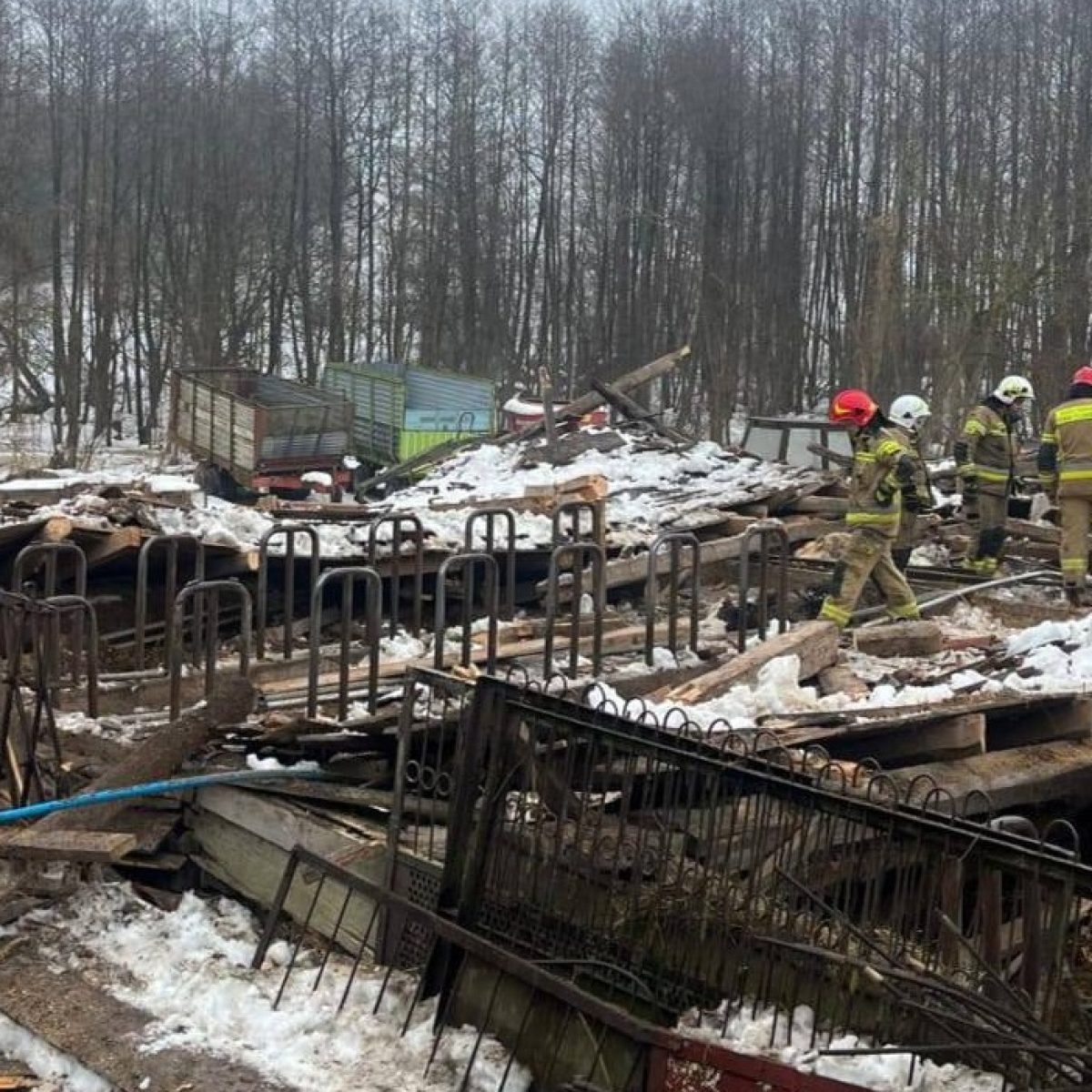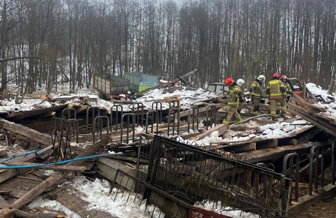 W poniedziałek, 23 lutego 2026 roku, w miejscowości Łaśmiady (woj. warmińsko-mazurskie) doszło do zawalenia się dachu w budynku gospodarczym. Dach drewnianej stodoły runął prawdopodobnie pod naporem mokrego śniegu. Wewnątrz obiektu znajdowały się zwierzęta. Strażacy przeszukali gruzowisko, z którego wydobyli 23 sztuki bydła. Cztery zwierzęta p...