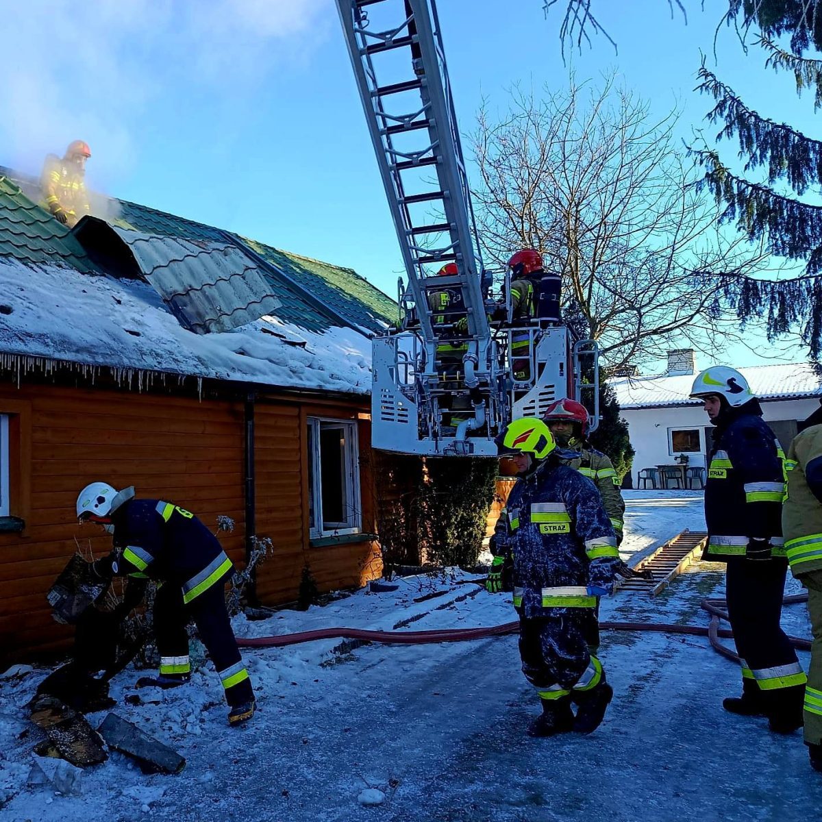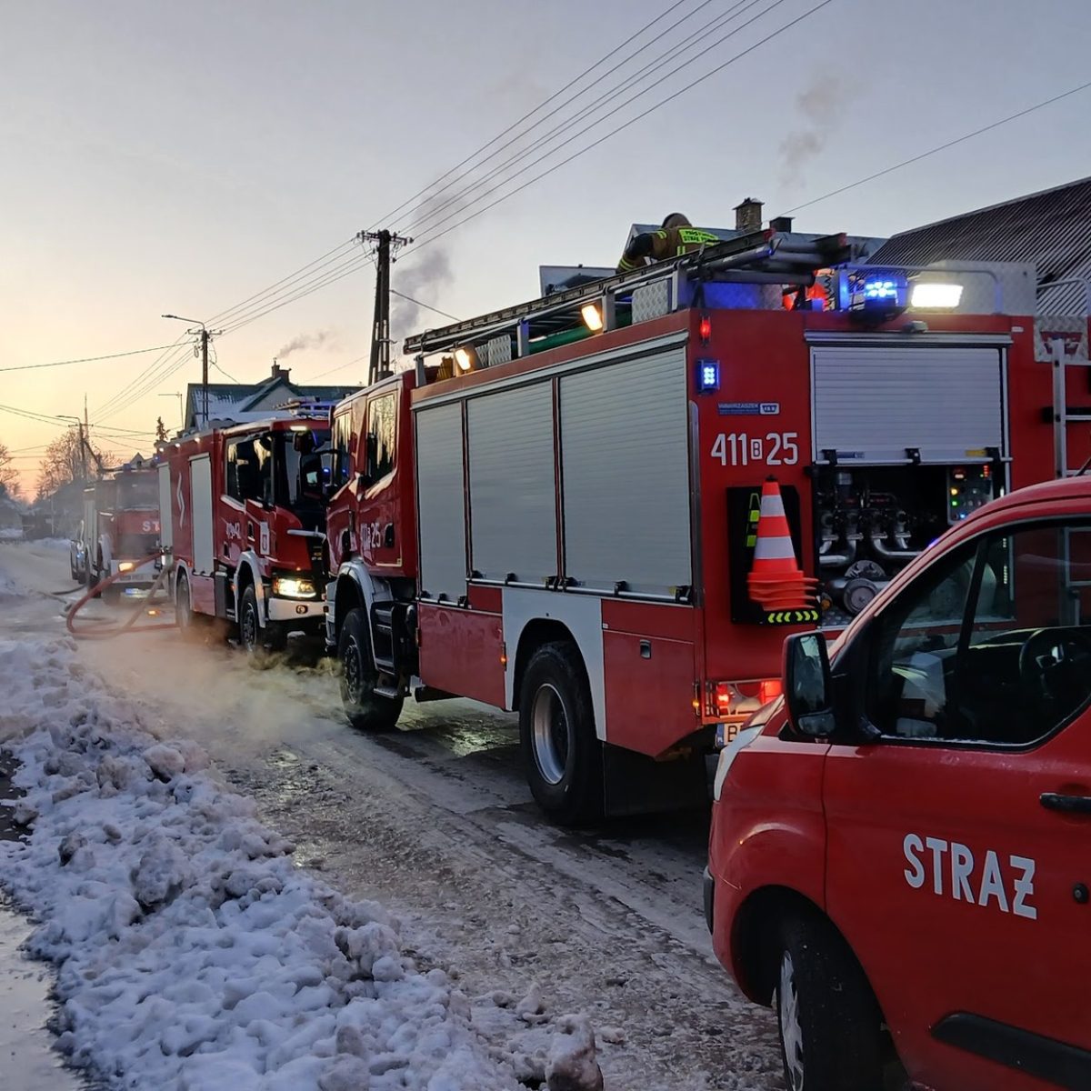 11 zastępów Państwowej i Ochotniczej Straży Pożarnej interweniowało przy pożarze budynku mieszkalnego w Janowie Podlaskim. Do zdarzenia doszło w poniedziałek 2 lutego 206 roku. Akcja strażaków była utrudniona z uwagi na drewnianą konstrukcję domu, która sprzyjała rozwojowi pożaru. Ratownicy dokonali częściowej rozbiórki konstrukcji budynku, ab...
