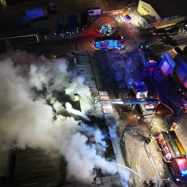 Osiem zastępów straży pożarnej interweniowało przy pożarze budynków stolarni w Polesiu (woj. lubelskie). Zgłoszenie o pożarze kompleksu obiektów gospodarczych wpłynęło do strażaków w piątek, 30 stycznia 2026 roku, około godziny 17:30. W momencie dojazdu na miejsce zgłoszenia pierwszych zastępów straży pożarnej obiekt w całości objęty był ognie...