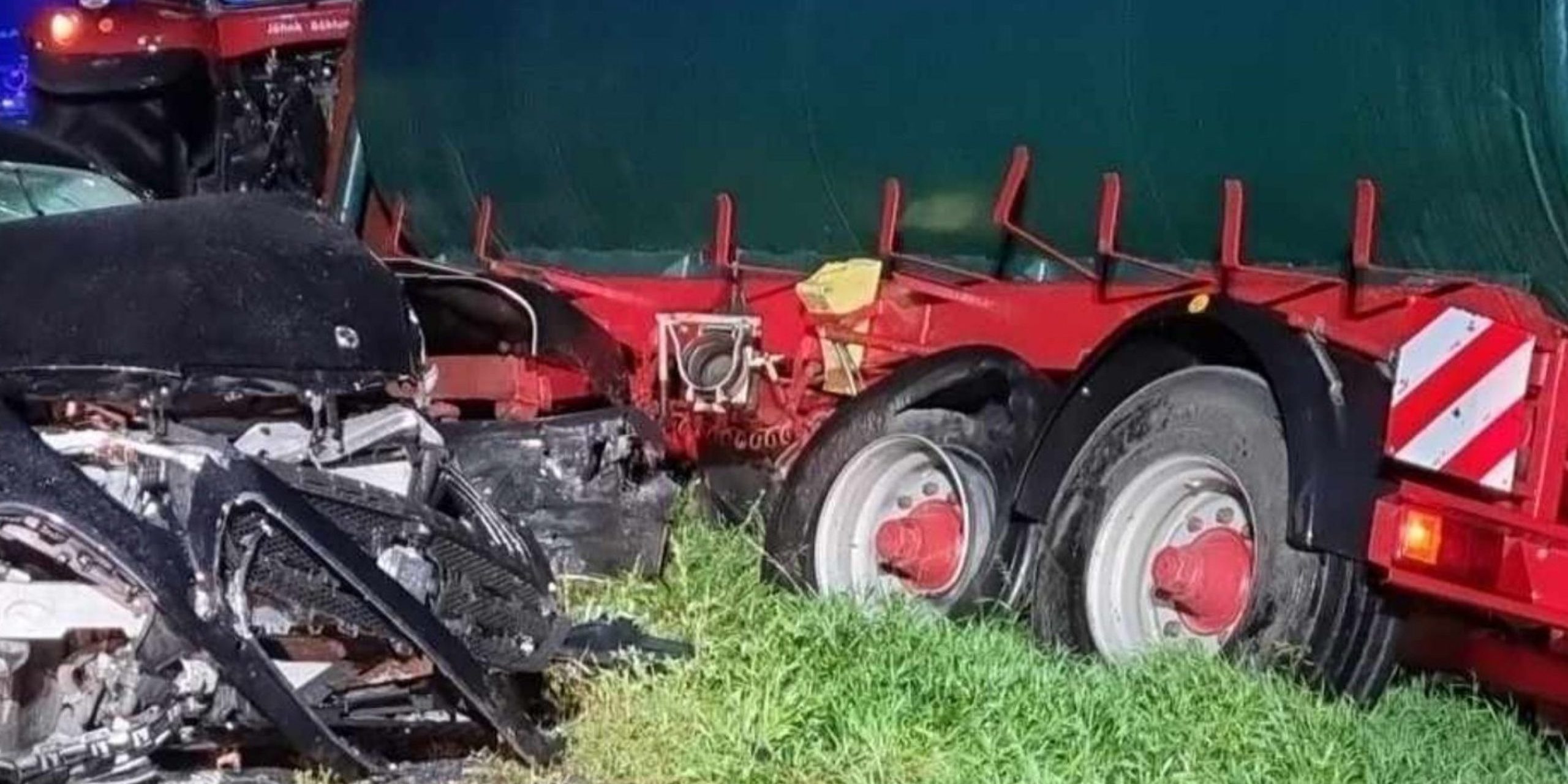 Wczoraj, 24 września 2024 roku, około godziny 18:41, doszło do niebezpiecznie wygladającego wypadku z udziałem pojazdu osobowego marki BMW i ciągnika rolniczego z przeczepą – cysterną. Pojazd osobowy wbił się w przód przyczepy.