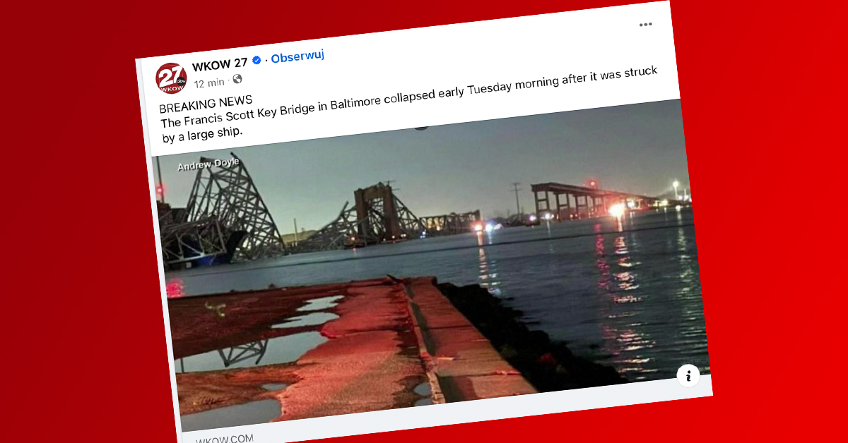 W amerykańskiej miejscowości Baltimore doszło do zawalenia się mostu Francis Scott Key Bridge, który przebiegał nad rzeką Patapsco. Do zawalenia doszło w wyniku uderzenia w jedną z części mostu przez duży statek kontenerowy. W momencie zawalenia na moście znajdowało się kilkanaście pojazdów, które wpadły do rzeki. Na miejsce zdarzenia zostały zadysponowane służby ratunkowe oraz różne agencje. Samo zdarzenie zostało zakwalifikowane jako masowe.