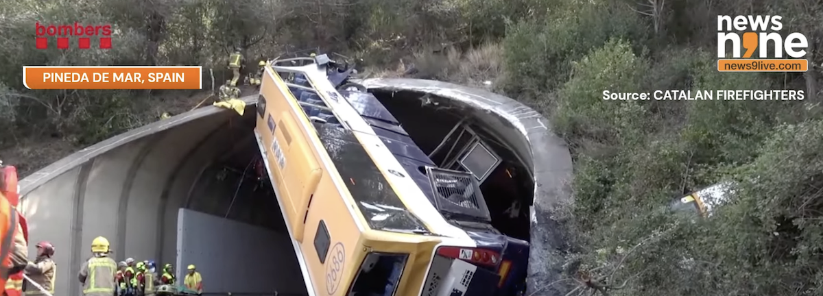 Około godziny 08:45 dnia 17.07.2024 na autostradzie C-32 przy wjeździe do tunelu pomiędzy Pineda de Mar i Tordera (Hiszpania) doszło do niecodziennego zdarzenia z udziałem autobusu. Prawdopodobnie w wyniku najechania na prawe betonowe obrzeże tunelu, autobus uderzył w górną część tunelu i pozostał uniesiony w kącie 45 stopni.