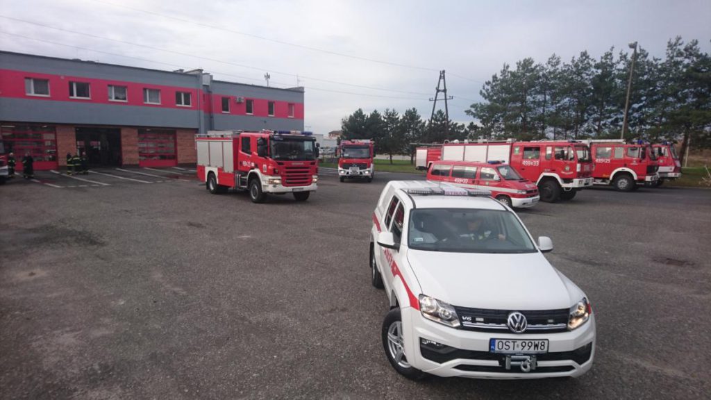 Po przybyciu na miejsce zdarzenia służb ratunkowych zgłoszenie zostało potwierdzone. Pożar w komorze silnika został ugaszony przy użyciu gaśnic. Strażacy zabezpieczyli miejsce zdarzenia, oświetlili je oraz przy użyciu narzędzi hydraulicznych wykonali dostęp do poszkodowanych osób. Jak się okazało pojazdem podróżowały dwie osoby, a nie trzy. Poszkodowane osoby zostały wydobyte z wraku pojazdu.