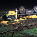 Dźwig dachował do przydrożnego rowu w wyniku wypadku, do którego doszło 4 listopada br. pod Jegłownikem (powiat elbląski).