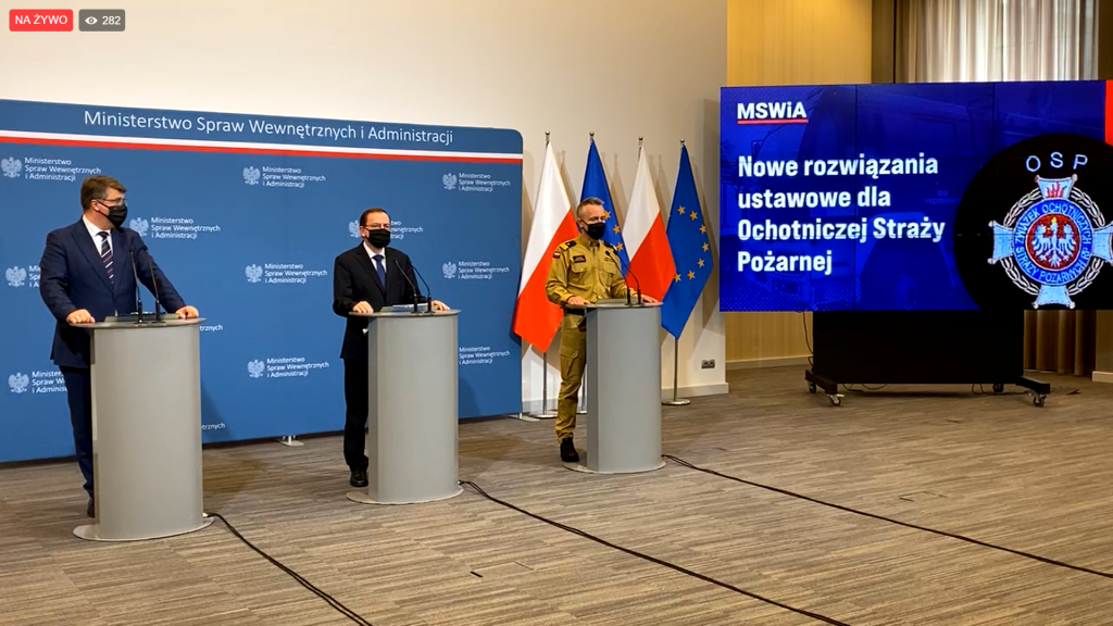 Dziś o godz. 12:00 rozpoczęła się konferencja prasowa, w której wezmą udział: Mariusz Kamiński, minister spraw wewnętrznych i administracji; Maciej Wąsik, sekretarz stanu w MSWiA oraz nadbryg. Andrzej Bartkowiak, komendant główny Państwowej Straży Pożarnej.