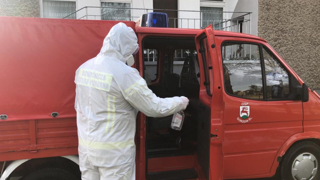 Strażacy wykonują zadania od godziny 8:00 do 20:00 w wyznaczonych miejscach w ubraniach ochronnych oraz w ścisłym reżimie sanitarnym.