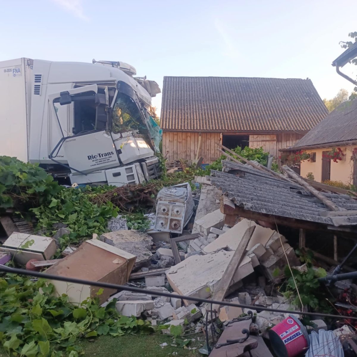11 sierpnia 2025 roku służby ratunkowe otrzymały zgłoszenie o poważnym wypadku, do którego doszło na drodze krajowej nr 9 w miejscowości Młynek (woj. świętokrzyskie). Ciągnik siodłowy z naczepą zderzył się z samochodem osobowym. Następnie zestaw zjechał z drogi, przebił ogrodzenie i uderzył w budynek. Budynek gospodarczy uległ zawaleniu. W śro...